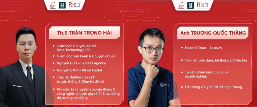 Chương trình có sự tham gia của ThS. Trần Trọng Hải, Giám đốc Chuyển đổi số Mate Technology JSC, người có nhiều năm kinh nghiệm trong lĩnh vực truyền thông và công nghệ, hiện đồng thời đảm nhiệm vai trò quản lý và nghiên cứu về chuyển đổi số; và ông Trương Quốc Thắng, Head of Data tại Base.vn, chuyên gia trong lĩnh vực dữ liệu với kinh nghiệm xây dựng hệ thống dữ liệu quy mô lớn và tư vấn chiến lược cho nhiều doanh nghiệp. Các diễn giả sẽ tập trung phân tích tác động của AI tới thị trường lao động, yêu cầu về năng lực và tư duy của ứng viên trong thời đại số, đồng thời gợi mở một số định hướng phát triển nghề nghiệp phù hợp cho sinh viên khối ngành Kinh tế.